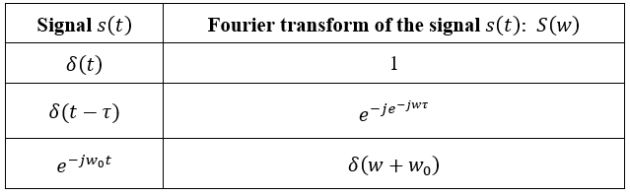 \(s\left(t\right)=Acos\left(\omega_0t\right)=A\left(\frac{e^{j\omega_0t}+e^{-j\omega_0t}}{2}\right)\)\( \implies\) \(S\left(\omega\right)=\frac{A}{2}\delta\left(\omega-\omega_0\right)+\frac{A}{2}\delta\left(\omega+\omega_0\right)\)